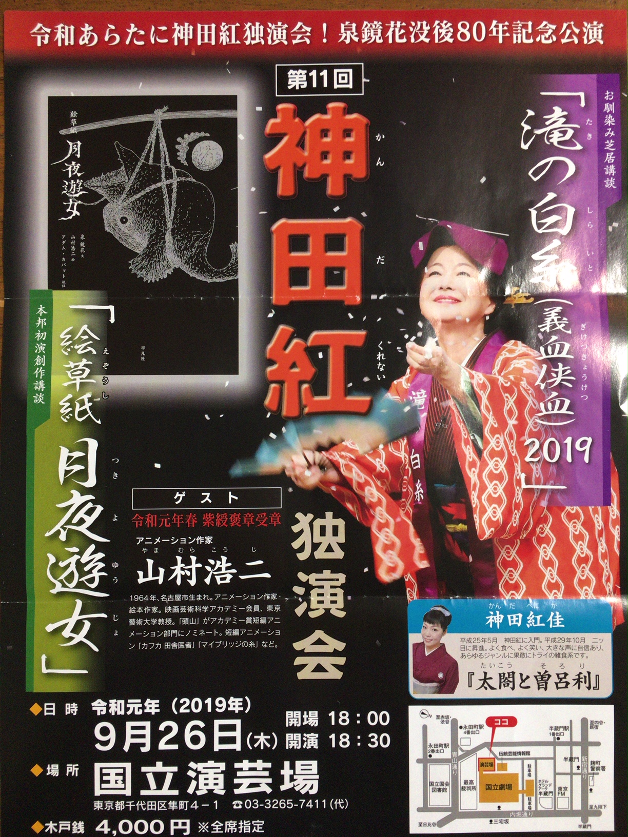 神田紅さん(講談師)年に一度の独演会9/26毎年感動致します。ご一緒しませんか?