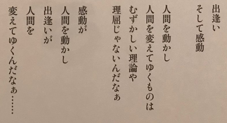 日々の中でどんな方との出会いがあるか分かりませんが、その出逢いが感動に繋がり人間を変えてゆくその言葉に、又希望を見ています。